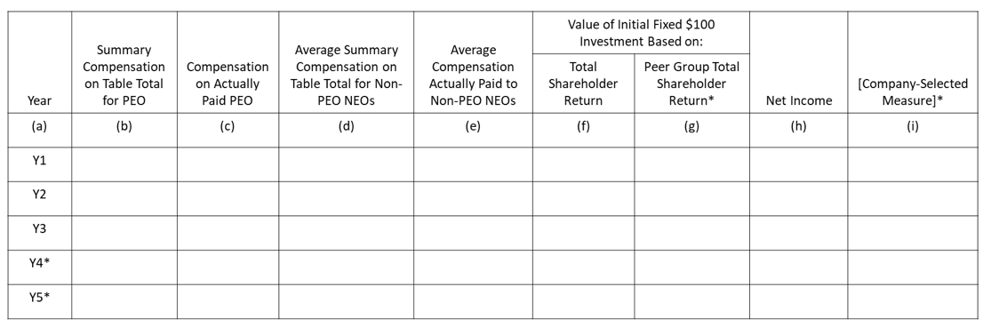 New Item 402(v) of Regulation S-K will require registrants to provide a table disclosing specified executive compensation and financial performance measures for the registrant’s five most recently completed fiscal years.